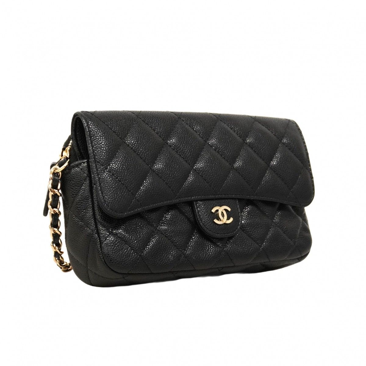 5 ic 3383-h シャネル ショルダーウォレット マトラッセ キャビアスキン ブラック シャンパンゴールド金具 レディース