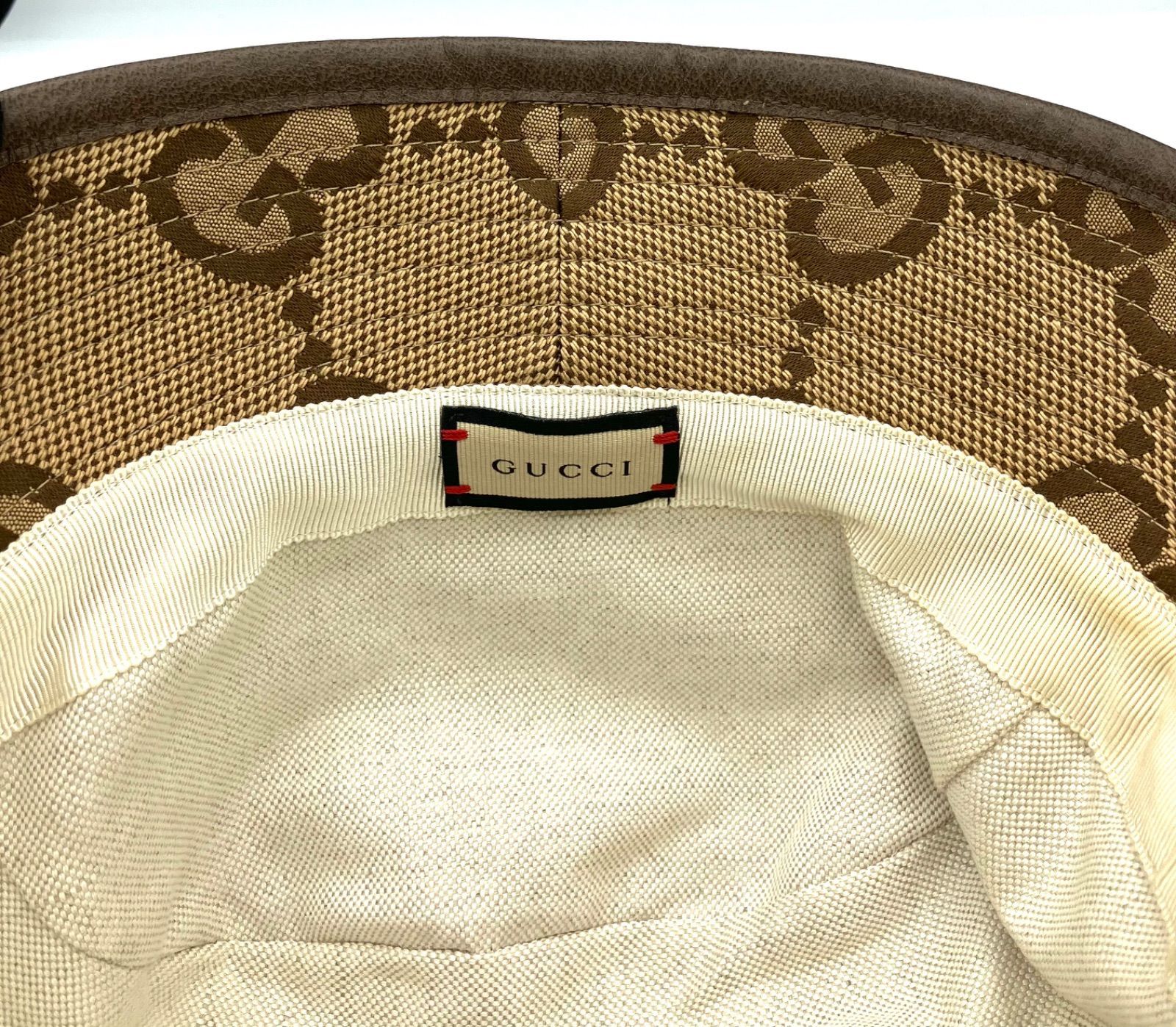 鑑定済み グッチ GUCCI ジャンボGG バケット ハット 681256 3 HAGJ 2564 ベージュ ブラウン バケハ 帽子