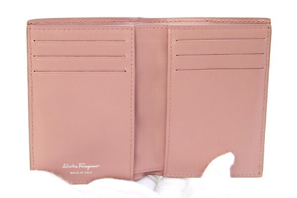 フェラガモ二つ折り札入れダブルガンチーニ22D665ピンクレザー新品財布コンパクトウォレットミニ財布小銭入れなしレディースSalvatoreFerragamo