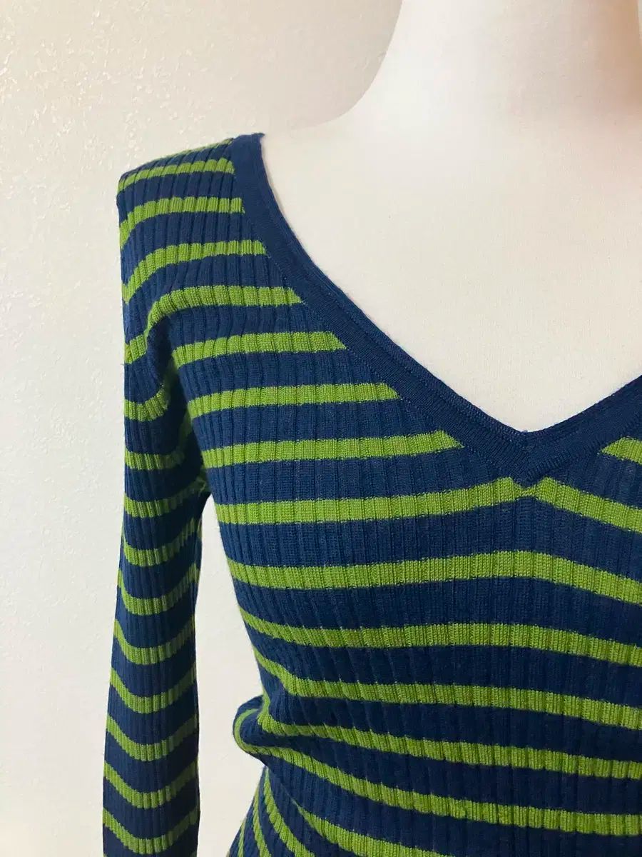 これはPaul Smithのネイビーグリーンのストライプのウールニットです