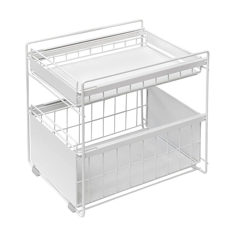 デッドスペースが生まれがちなシンク下をスッキリ収納できる便利なラック。コンパクトなので洗面台の下や、キッチンの上など様々な場所で活躍します。