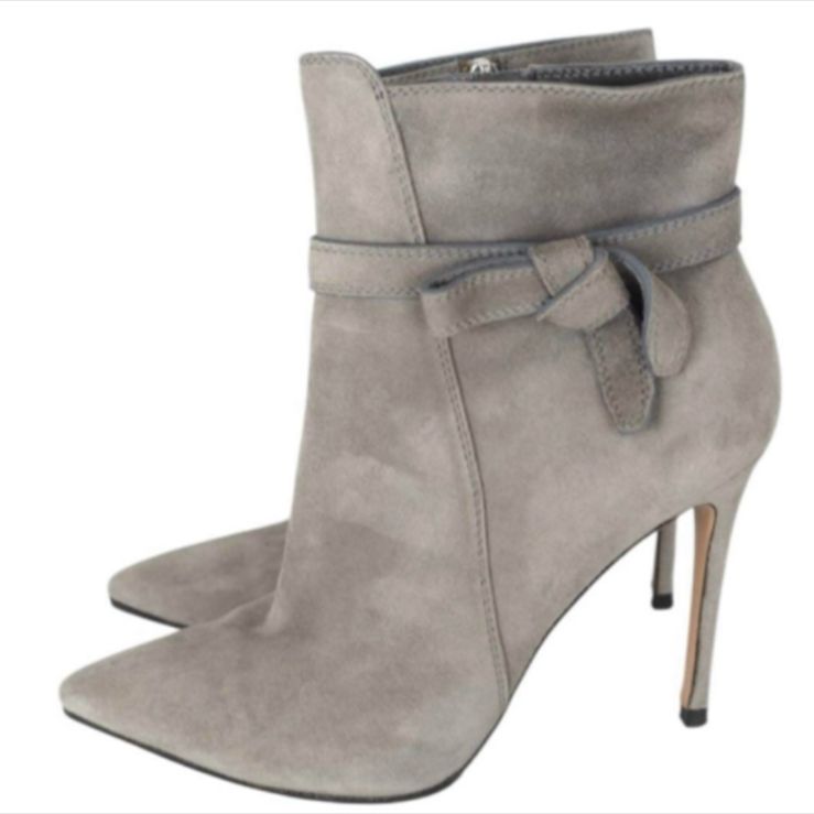Gianvito Rossi ジャンヴィト ロッシ ショートブーツ スエード リボン ピンヒール 37 23.5 cm グレー 定価¥150 000