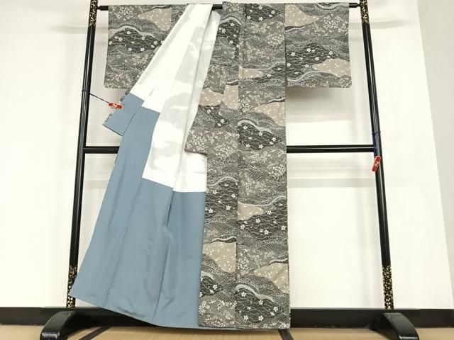 平和屋着物 石川県指定無形文化財 牛首紬 白山工房 手織り 立波花鳥文 正絹 zg
