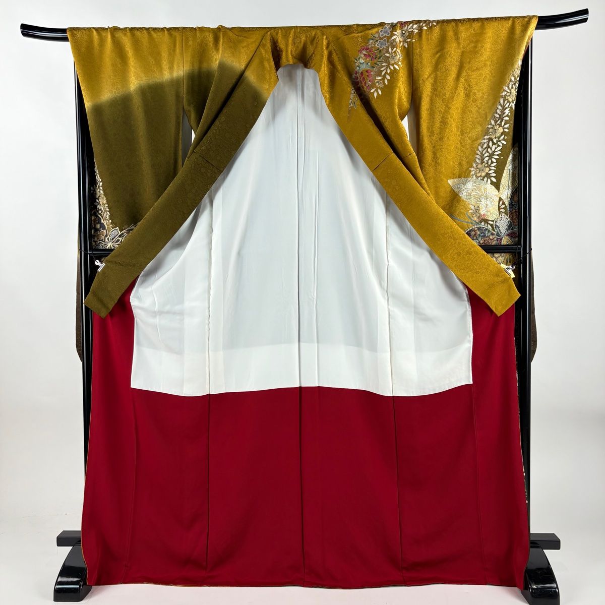 振袖 身丈173 cm 裄丈69 L 袷 蝶 うさぎ 金通し 絞り 黄土色 正絹