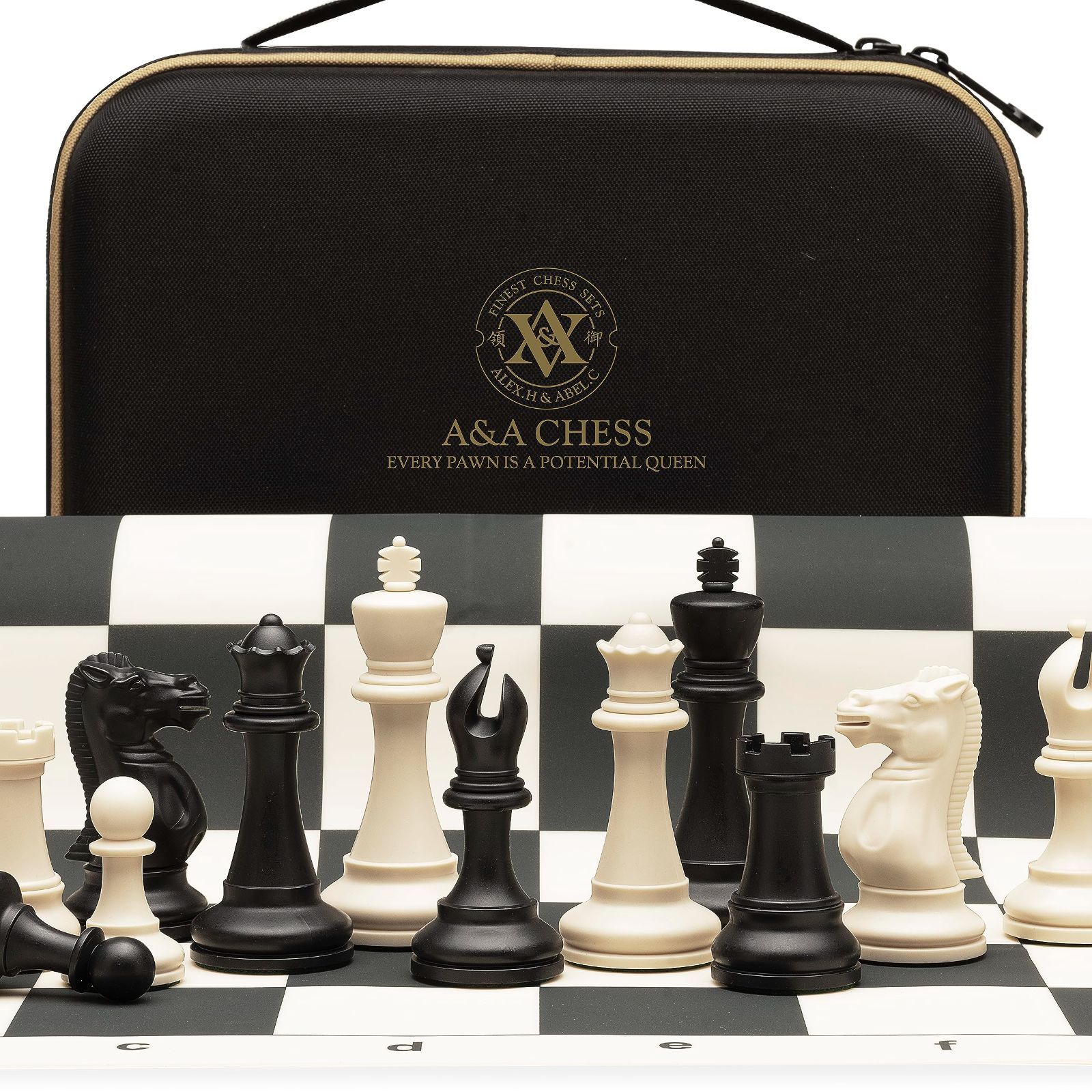 A&Aトーナメントのチェスセット/20"x 20」折り畳みなシリコン製チェス盤/王高3.75"のプラスチック四倍重量の古典的なスタントン駒/貯蔵袋/日本語ガイド付き…