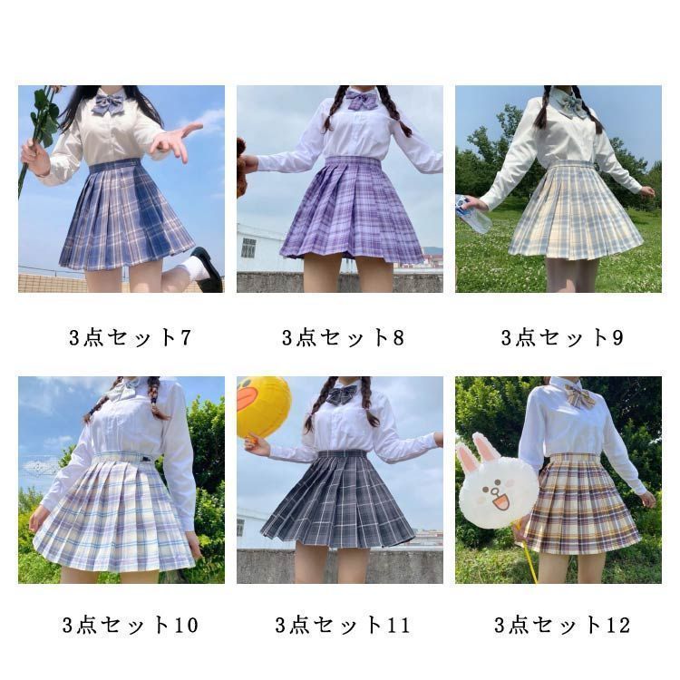 3点セット 選べる 学生服 女子高生 女子制服 3点 スクールシャツ スカート リボン 上下セット 長袖 チェック柄 コスプレ 仮装 コスチューム プリーツスカート 高校生 中学生 学生 学校 swjay 333