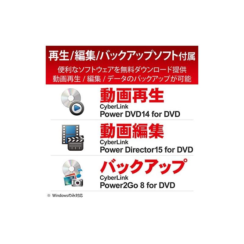 商品名:ロジテック 外付け DVDドライブ USB3.2(Gen1) USB Type Cケーブル付 windows/Mac/Surface対応 サイバーリンク 書き込み/再生/編集ソフト付属 M-DISC対応 ブラック LDR-PML8U3CVBK