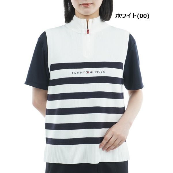 トミーヒルフィガー ゴルフ レディース ベスト フロントロゴ ハイネック ノースリーブニット TOMMY GOLF THLA 561 秋冬モデル ホワイト 00
