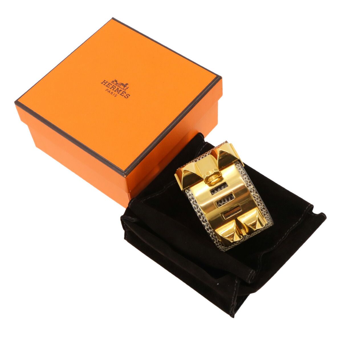 エルメス HERMES コリエドシアン バングル リザード オンブレ X刻印 ベージュ系 ゴールド 金具 Collier de Chien