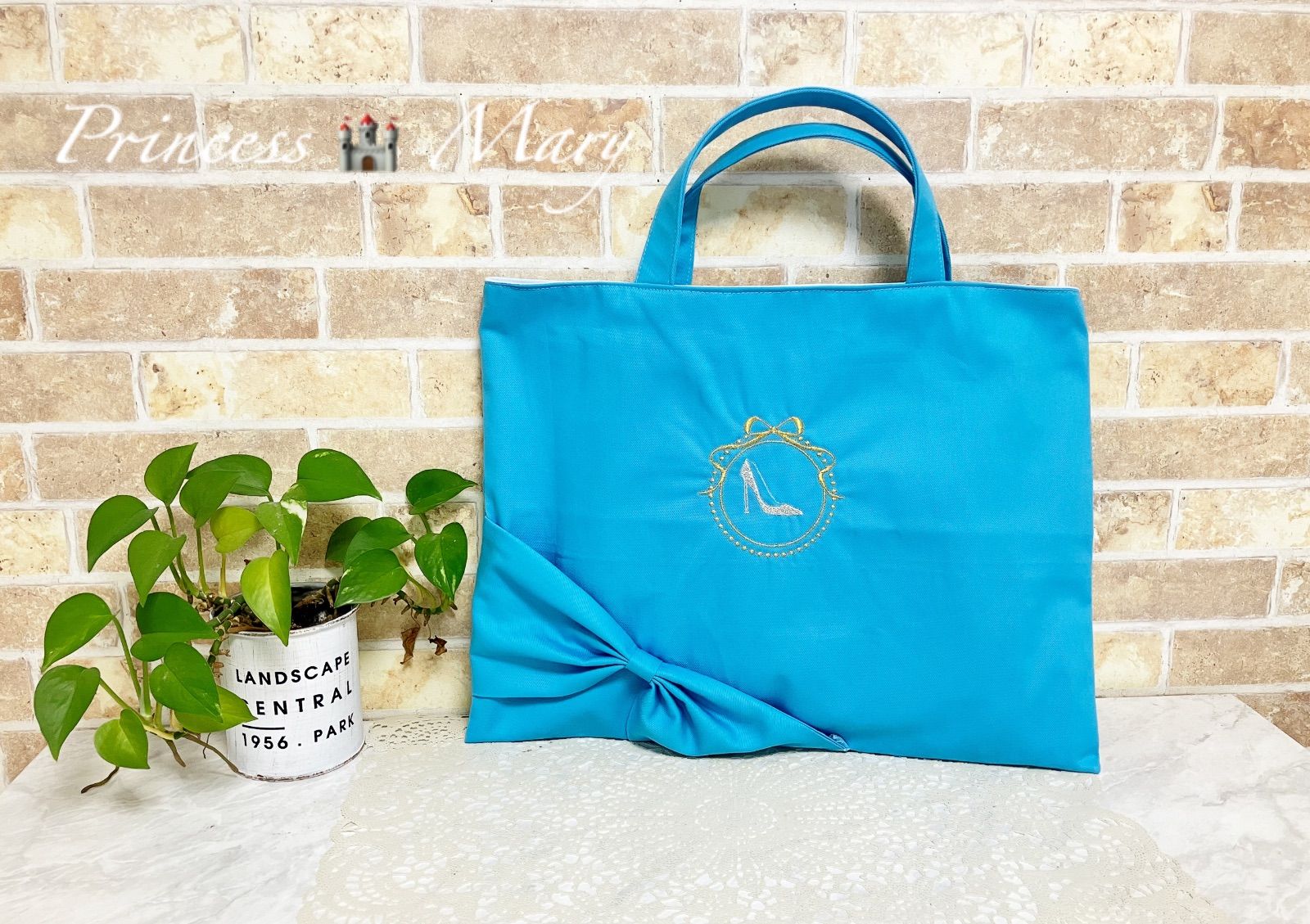 プリンセスのような刺繍入りレッスンバッグ シューズバッグ 体操着袋 ブルー 受注製作