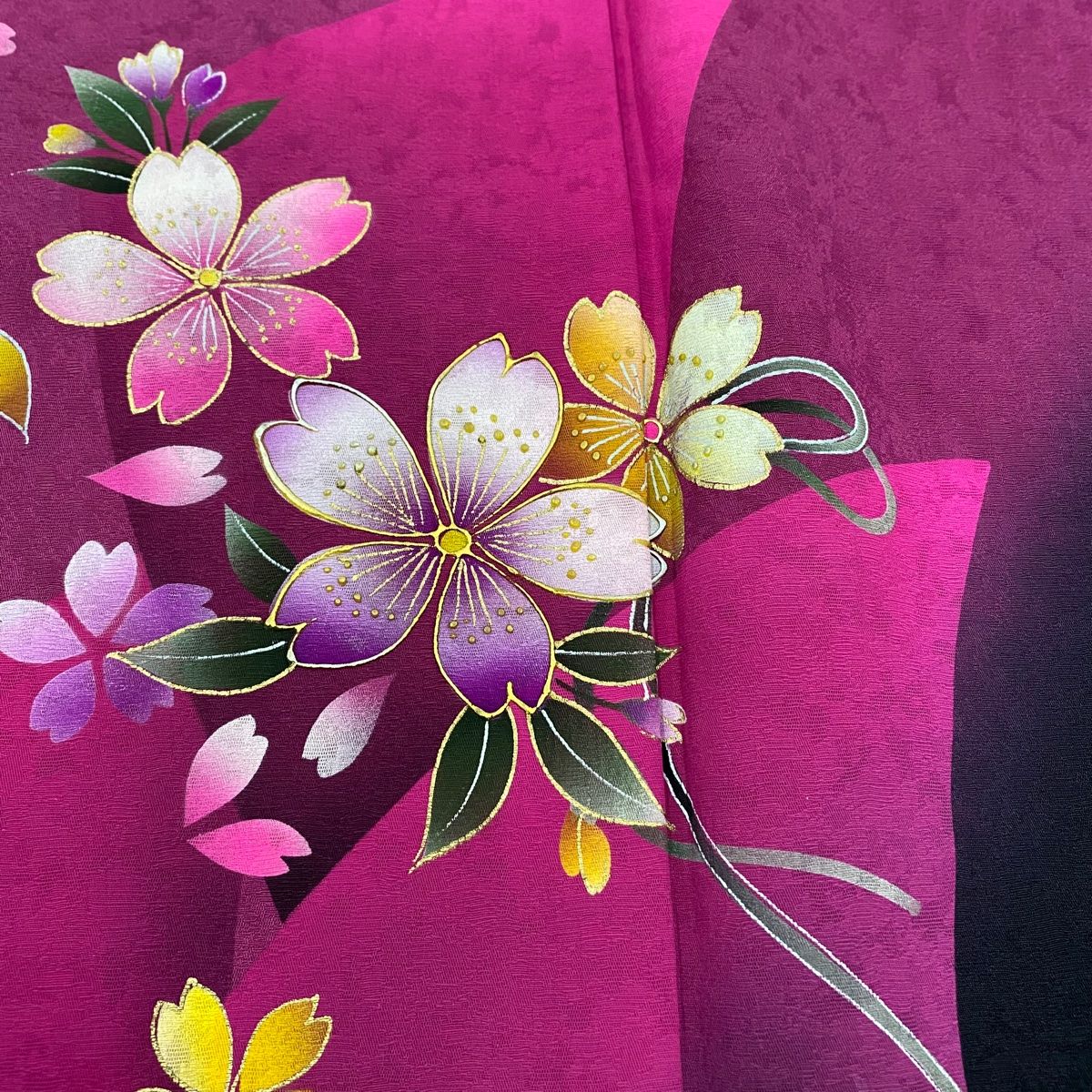 振袖 身丈164 cm 裄丈66 M 袷 桜 花びら 金彩 ぼかし 濃ピンク 正絹