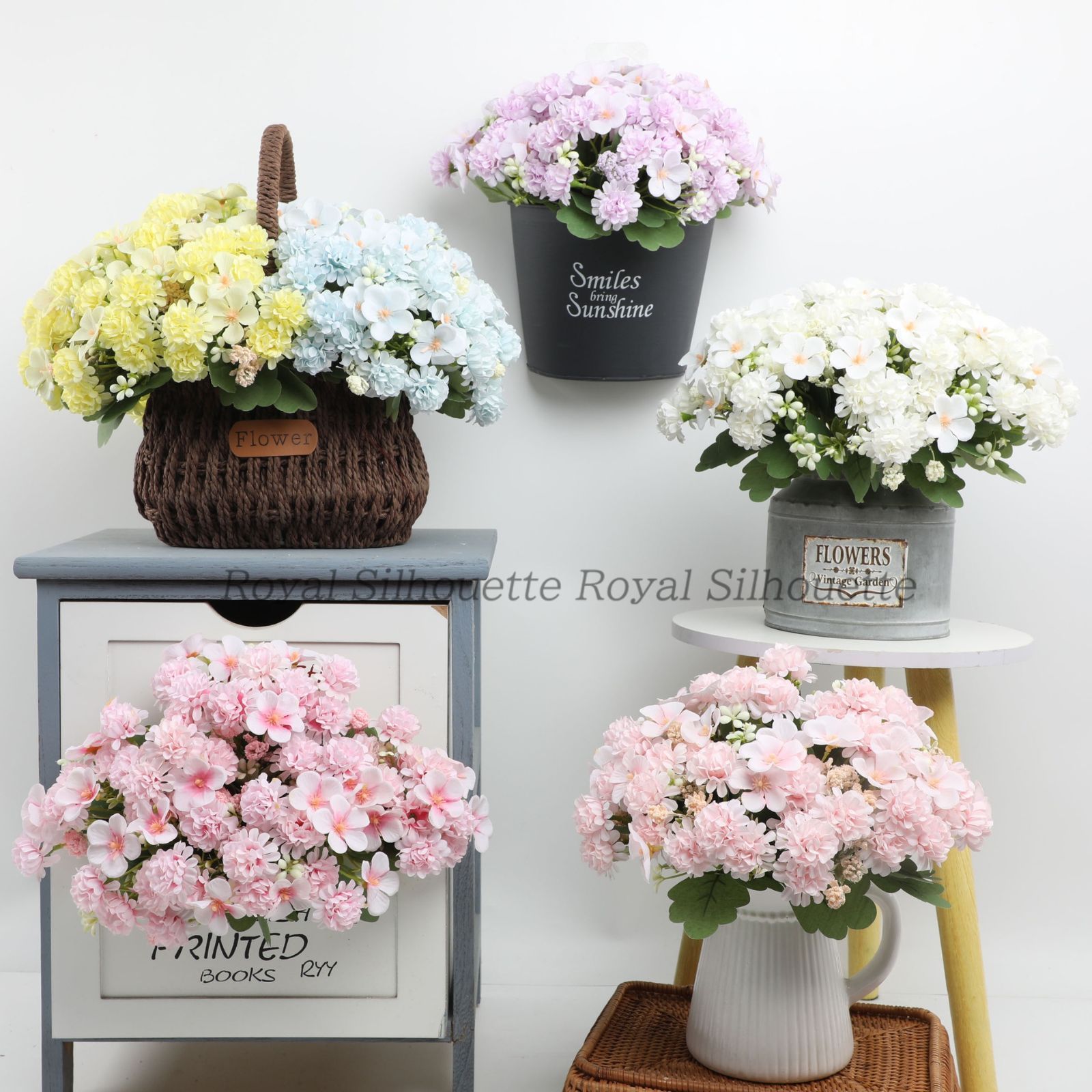 ロイヤルシルエットがセレクトした造花は、インテリアやウェディングシーンにぴったりな、お洒落で使いやすいアイテムです。まるで本物のような質感と美しいフォルムが魅力で、季節を問わず長く楽しめるのが特徴です。6色展開のため、お部屋の雰囲気や用途に合わせて、お好みの色を自由にお選びいただけます。