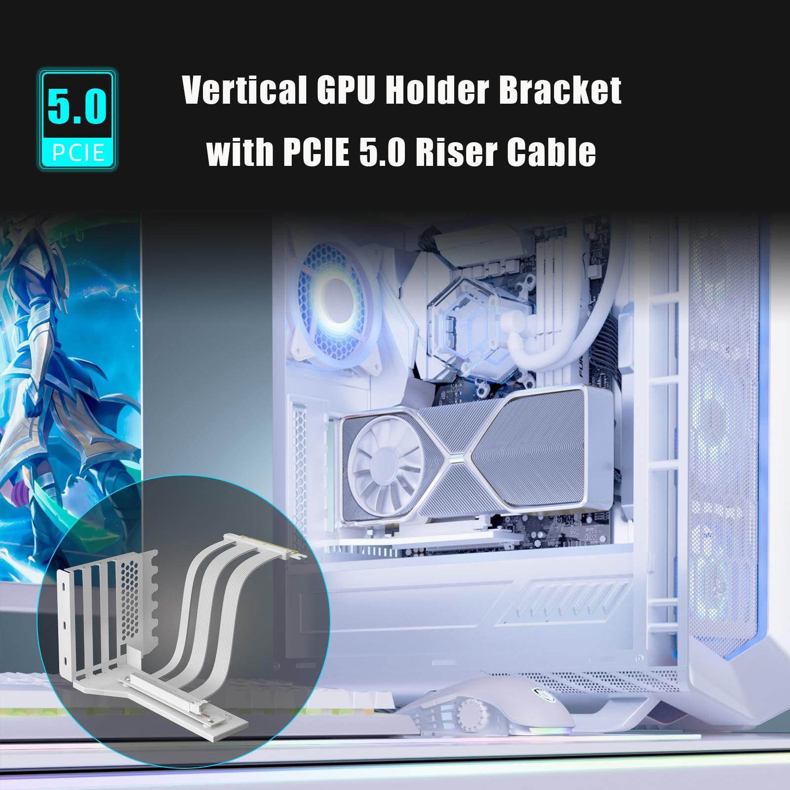 2スロットGPU用200mm PCIE 5.0ライザーケーブル付きGPU垂直マウントブラケット。通気性を良くするため、メスPCIEポートはブラケットのスロット2に固定することができます。