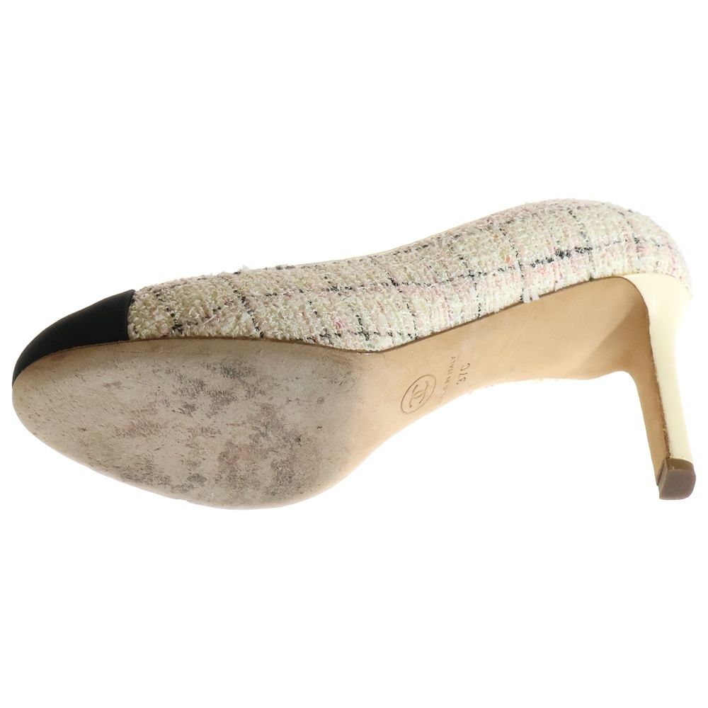 CHANEL シャネル ココマーク ステッチ ファンシーツイード 切り替え ヒール パンプス シューズ ホワイト ブラック レディース G 33734