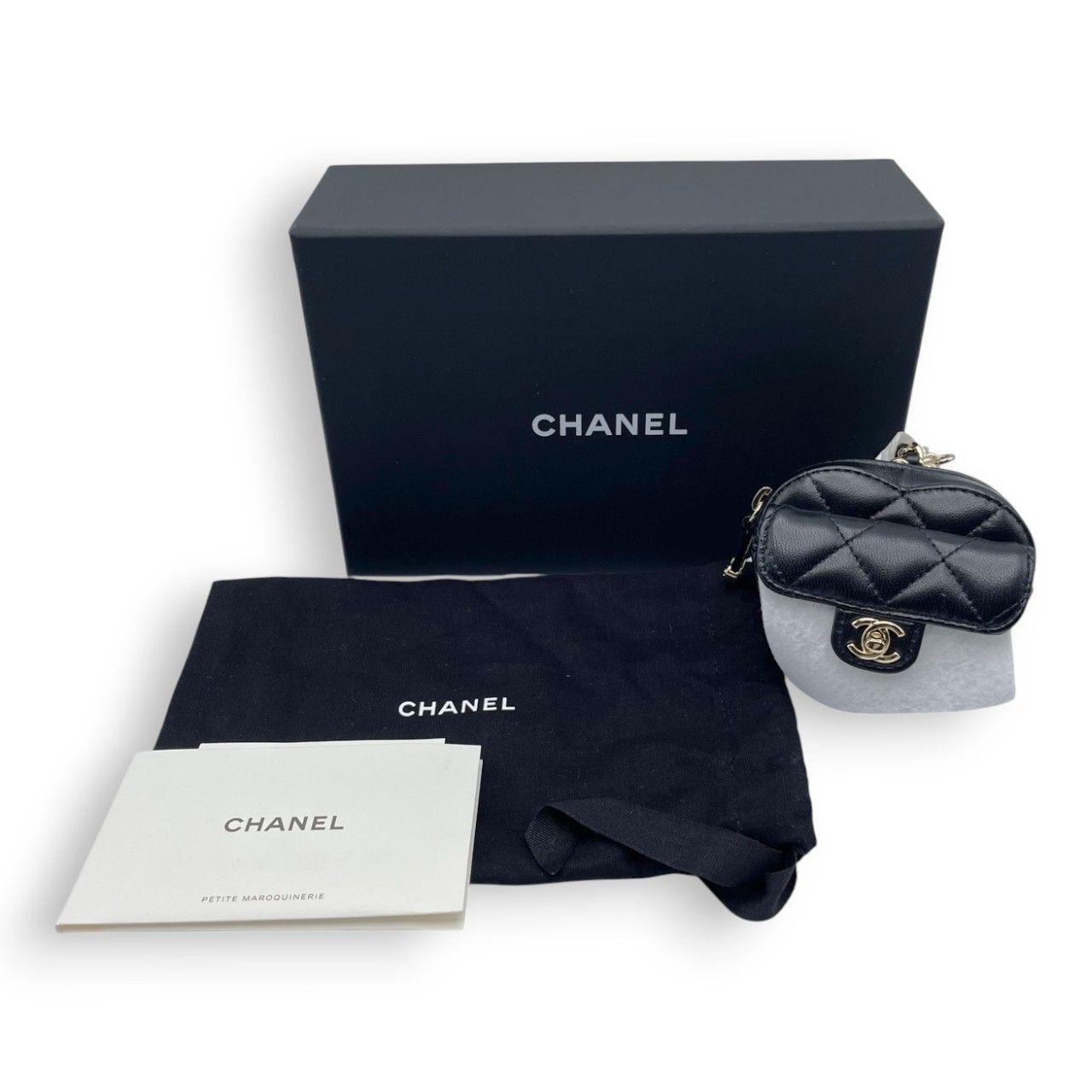 シャネル ミニハート バッグチャーム ブラック ラムスキン ゴールド金具