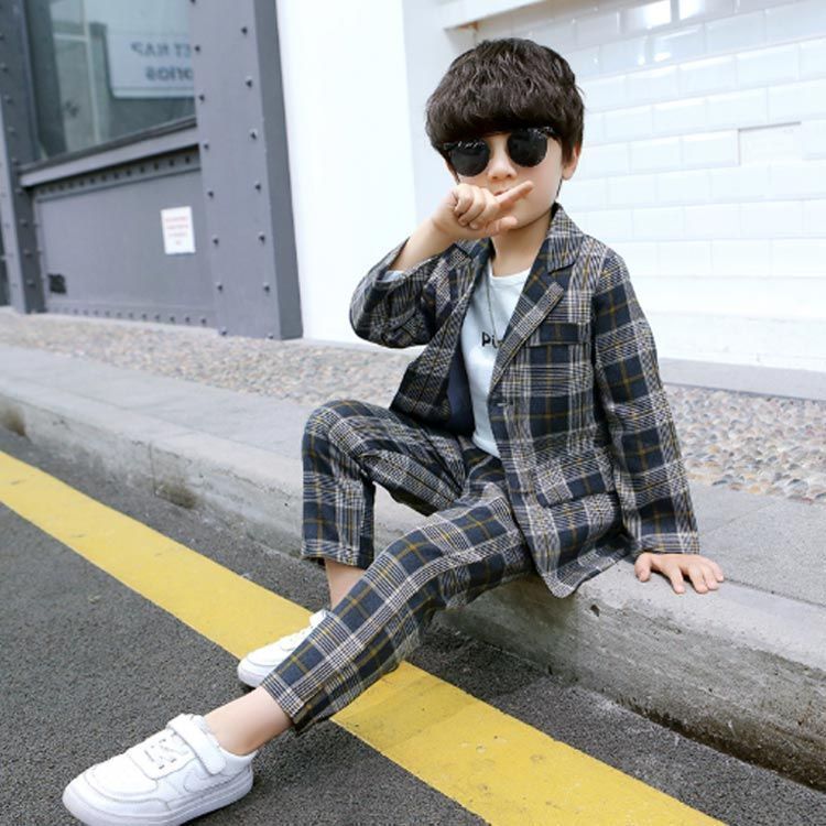 ブレザー 卒園式 ズボン 発表会 長袖 2点セット スーツ 上下セット フォーマルスーツ カジュアル 男の子 チェック柄 ジュニア 入学式 入園式 結婚式 140 卒業式 初節句 110 120 1 cjfj 142435