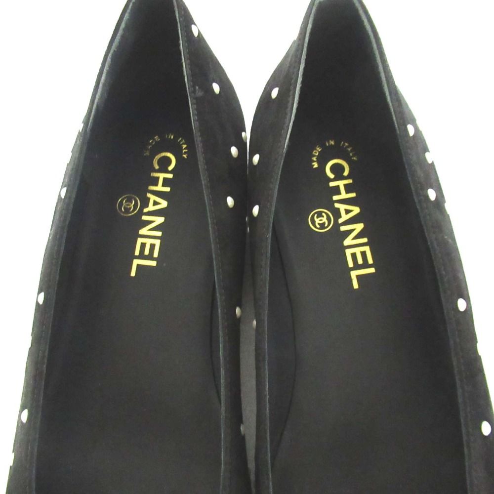 【商品名】CHANEL シャネル ココマーク パール装飾 スエード×パテントレザー フラットパンプス G33424 サイズ40C 約25.5cm ブラック