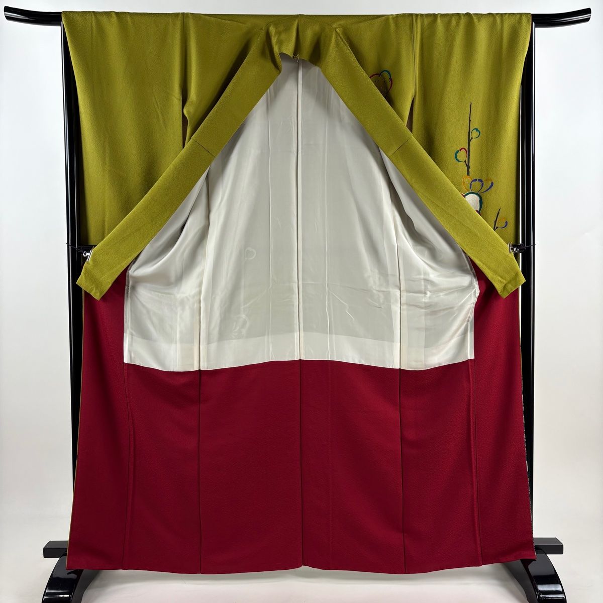 振袖 身丈164 cm 裄丈66 M 袷 梅 金銀彩 よもぎ色 正絹