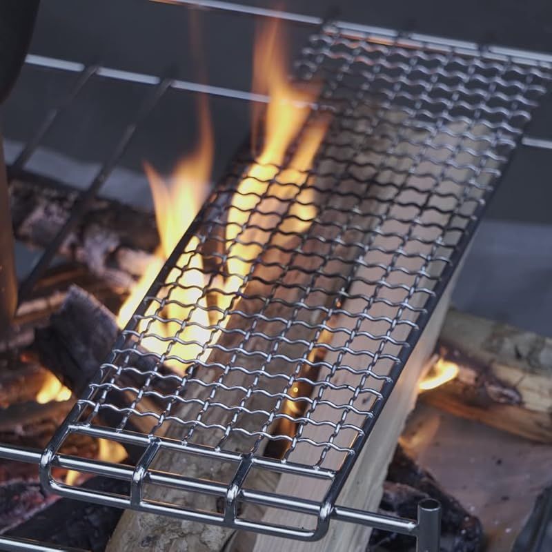 特徴:?高さ2パータン調整可能。火力に合せに合わせて高さを変えることができるので非常に便利です。 ?広げて差し込むだけ!超簡単焚火台。?薄くコンパクトな収納が可能。?ステンレスメッシュが傷んで来れば、取り換える事ができます。
