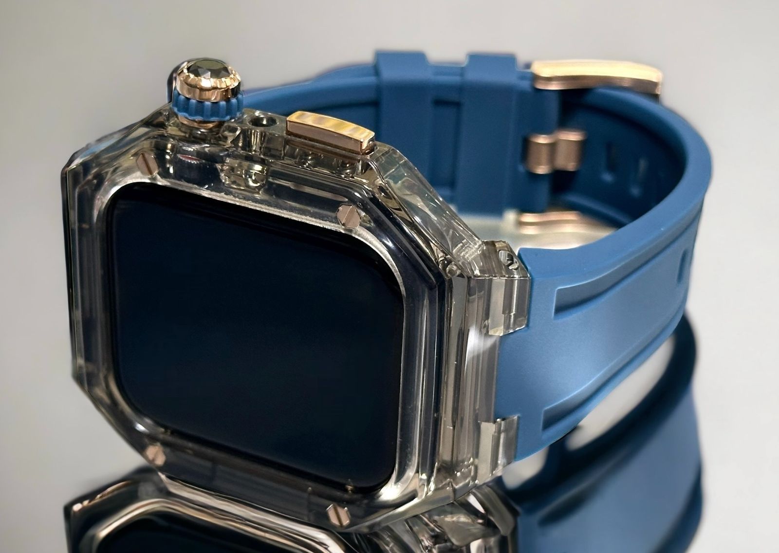 ローズゴールド ブラッククリア ネイビー アップルウォッチ ラバーベルト カバー クリア ケース 40 mm 41 44 45 4 5 6 7 8 9 se スポーツ メンズ レディース 4スクリュー Apple Watch バンド