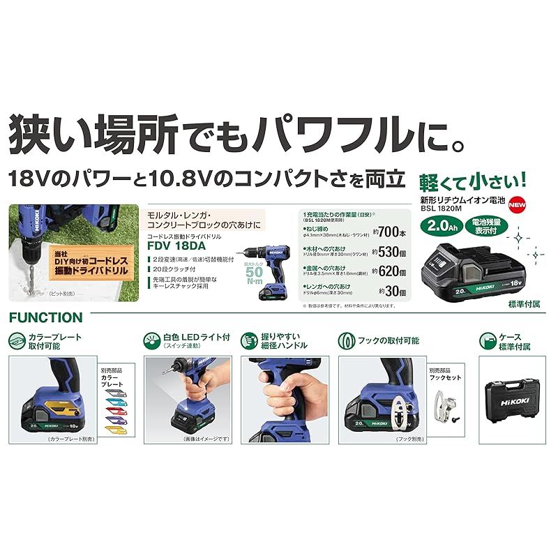HiKOKI ハイコーキ 18 V コードレス 振動ドライバドリル チャック 2 0 13 mm 20段クラッチ Ah 蓄電池 充電器 ケース付 FDV DA BG 1