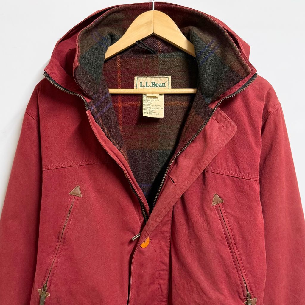 80 s L.L.Bean エルエルビーン キャンバスマウンテンパーカー ウールライニング フロントボタン フルジップ ポケット付き 赤 レッド系 Sサイズ No.H 997