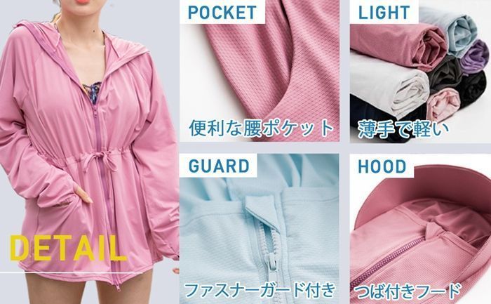 ラッシュガード レディース 丈長め 顔まで ジップ つば付き 日焼け防止 速乾 通気性 ロング 長袖 UVカット 体型カバー 水着 フード