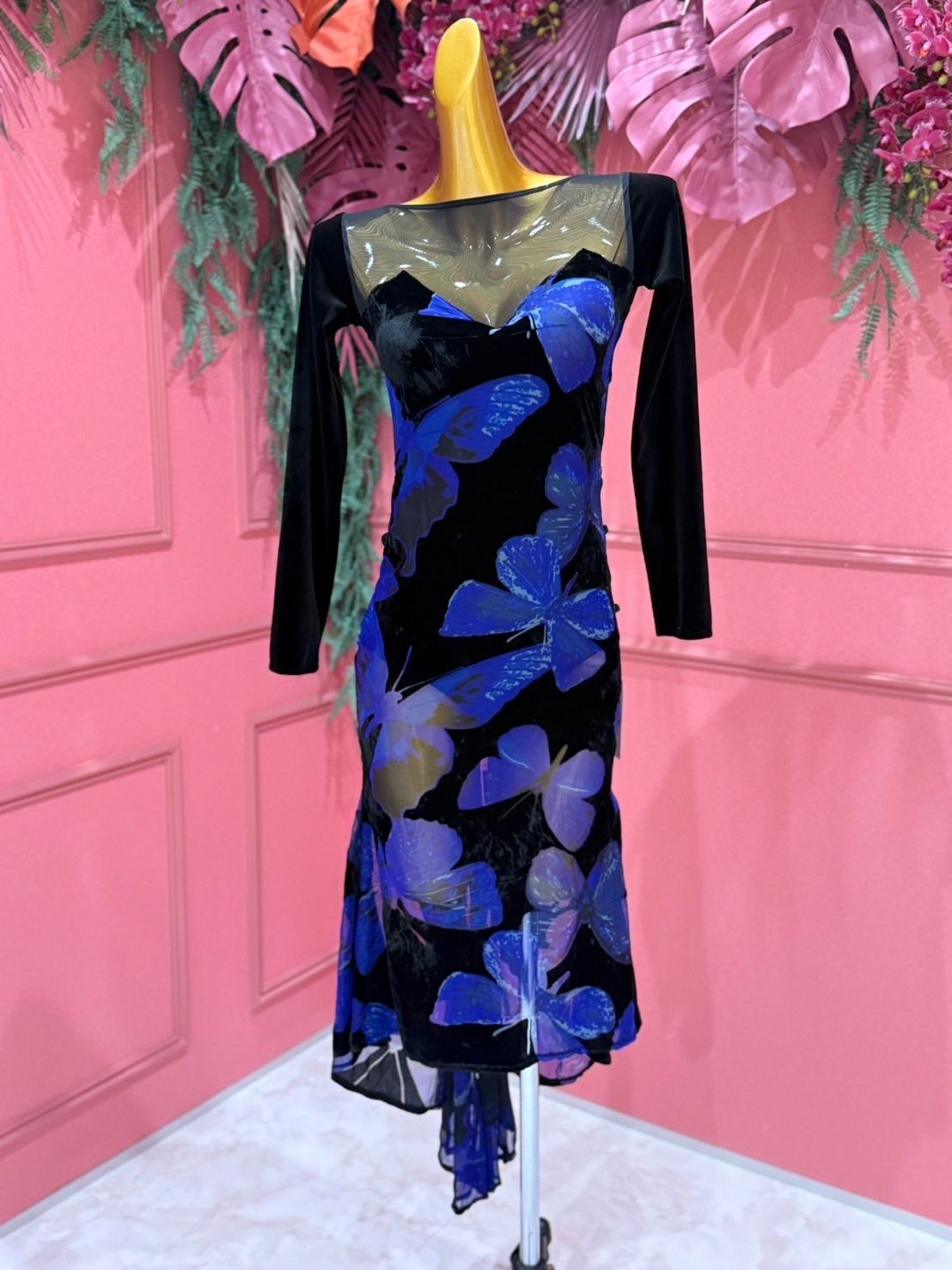 社交ダンス gentil ジャンティ 青蝶×黒 ラテンワンピース ブラック