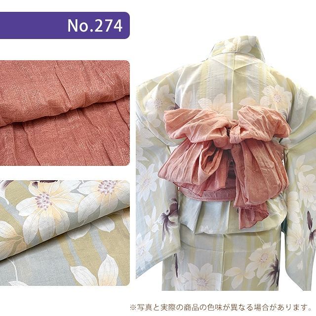 浴衣は綿100%、落ち着いたダスティカラー、上品で大人のこなれ感があります。