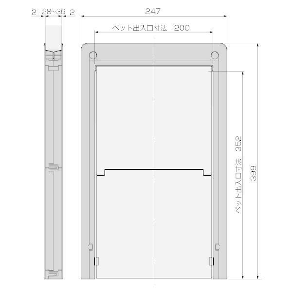 ペット出入口寸法:縦352mm×横200mm