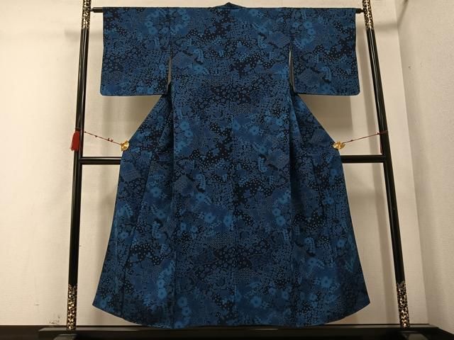 平和屋着物 上質な小紋 藍 草花文 正絹 ph