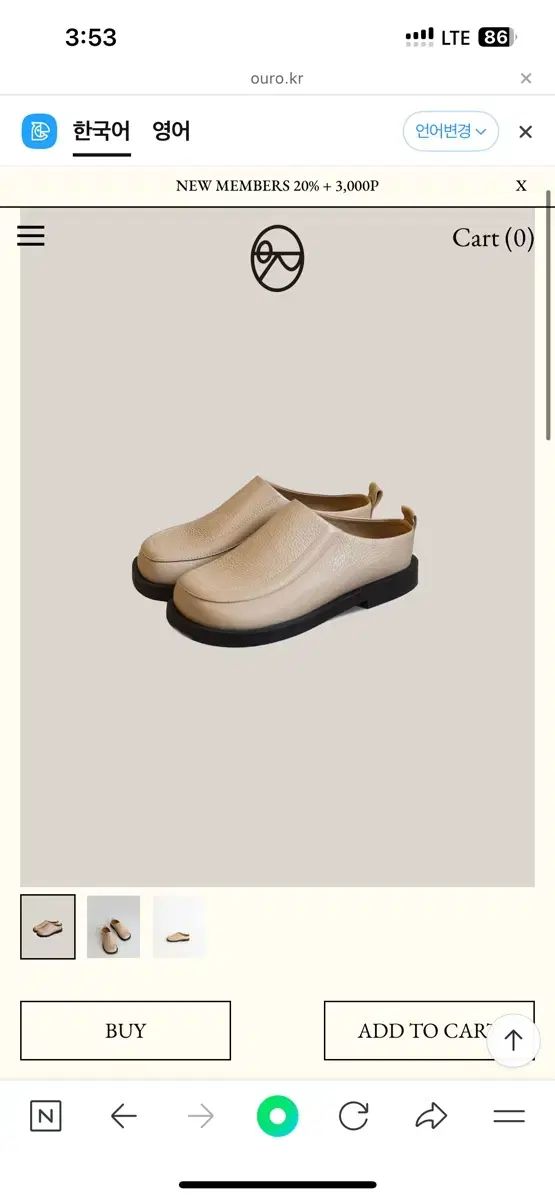 これはAuro Hippoダービーミュールフラットサイズ240です。ほのかなベージュ色なので、どんな服装にも合います。ゆったりしたフラットミュールデザインで着心地も快適です。