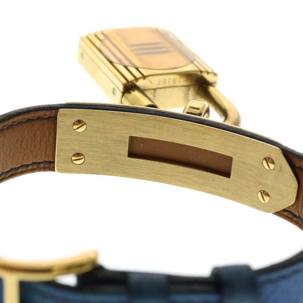 HERMES エルメス ケリーウォッチ パドロック カナデ ゴールド文字盤 レザーベルト クォーツ 腕時計 ゴールド ブルー 〇U刻印