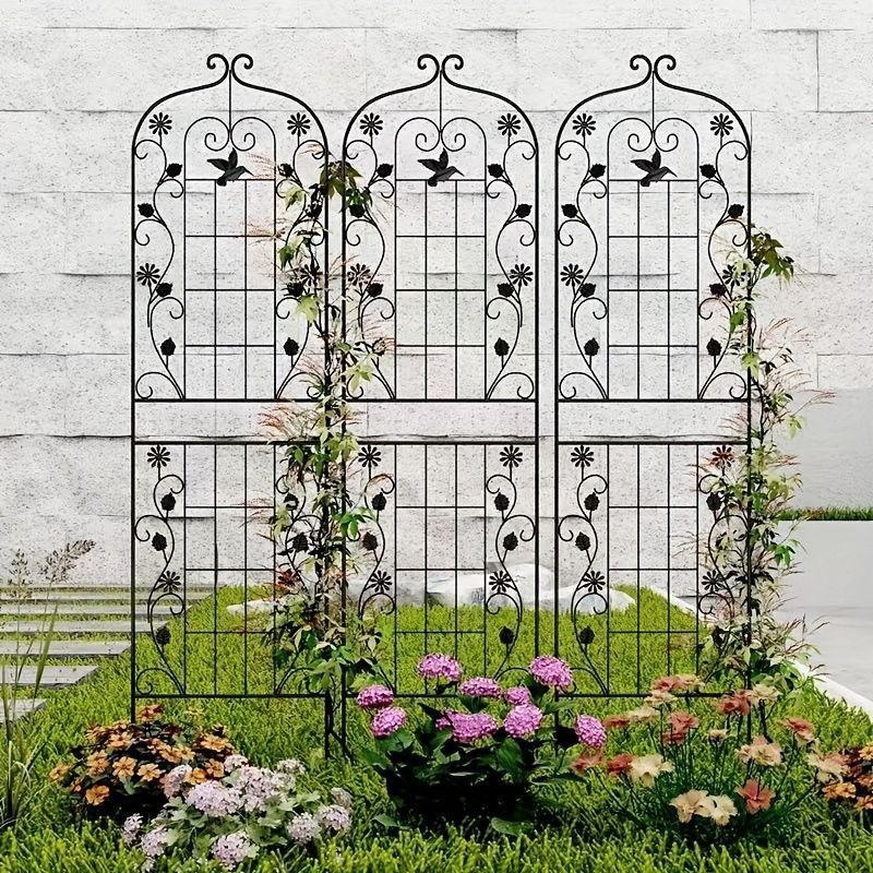 ガーデン フェンス ガーデンフェンス 耐久性のある鉄製トレリス 登り植物 薔薇 牡丹用 屋外庭園フェンス パティオ バルコニー植物サポート構造 装飾カットアウト付き 屋外フェンス用 植物サポート おしゃれ エレガント ガーデニング ブラック ホワイト