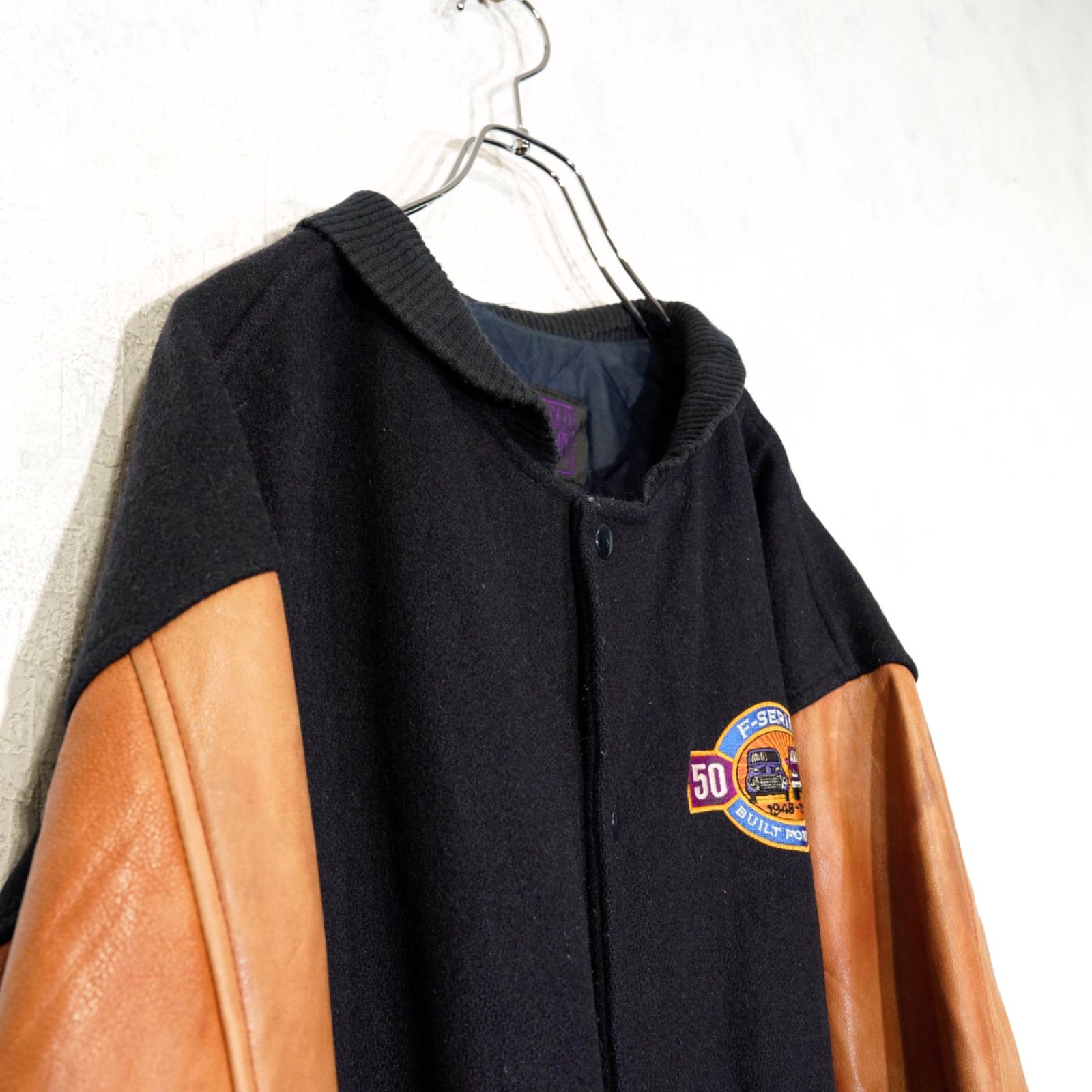 USA VINTAGE SPORWSWEAR by Modern EMBROIDERY DESIGN LEATHER WOOL STUDIAM JUMPER/アメリカ新品刺繍デザインレザーウールスタジャン