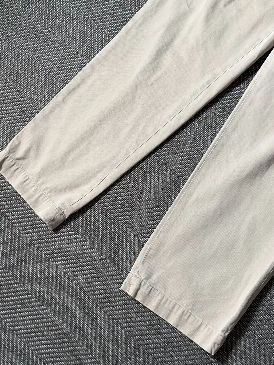 写真で見える微細なダメージが一部存在しますが、全体的に良好なコンディションを維持しており、ナチュラルなベージュカラーと共にポロ特有のヴィンテージムードがよく生かされているチノパンツです。実寸34程度のサイズです。