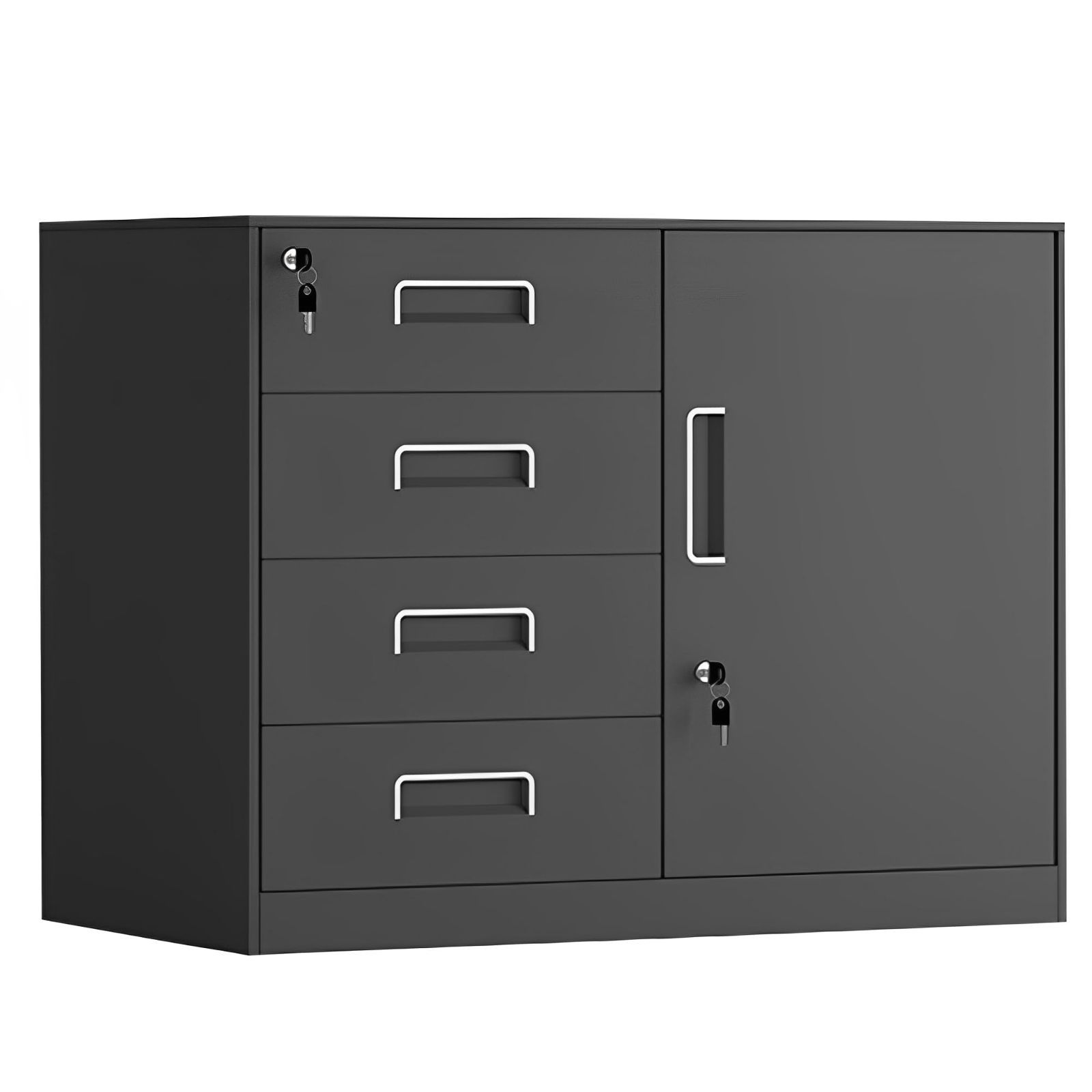 Floralies キャビネット オフィスキャビネット スチール 鍵付き 組立て不要 オフィス 病院 学校用 書類収納 完成品 ファイリング ロッカー 鍵付 コピー機置き台 (ブラック 4段(高さ58×奥行39×幅75cm))
