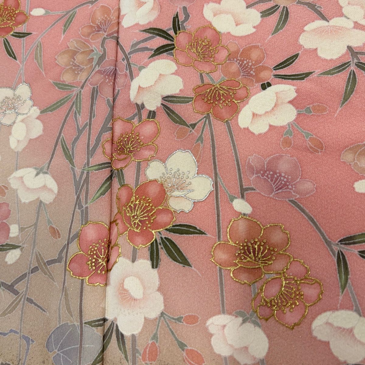 訪問着 身丈166 cm 裄丈68 L 袷 落款 桜 鴛鴦 金銀彩 染め分け サーモンピンク 正絹 秀品