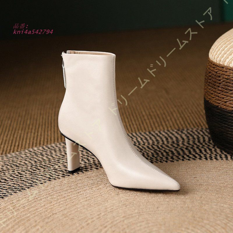 ハイヒール ポインテッドトゥ ショートブーツ レディース ブーツ ショート 歩きやすい おしゃれ 7 CMヒール 黒 大きいサイズ チャンキーヒール アンクルブーツ kni 4 a 542794
