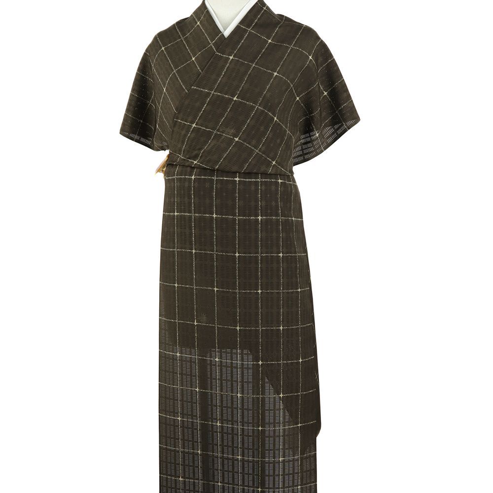 【 新品 】 着物 単衣 反物 アウトレット 夏 花織 伊と幸 松岡姫 絽 正絹 市松 絣 新古品 未仕立て カジュアル 国産生糸 着物 小紋 和装 No.i4-0710