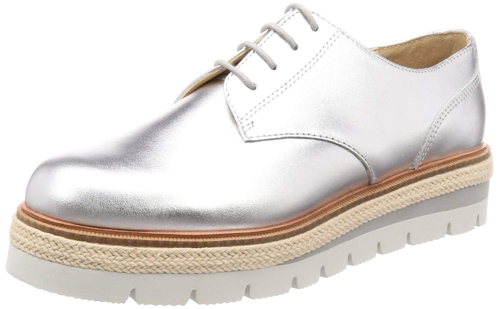 24 cm 2 E_シルバー ミオノティス レースアップシューズ 厚底マニッシュシューズ レディース シルバー E