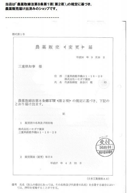 本剤は、農薬として使用する事は出来ません。