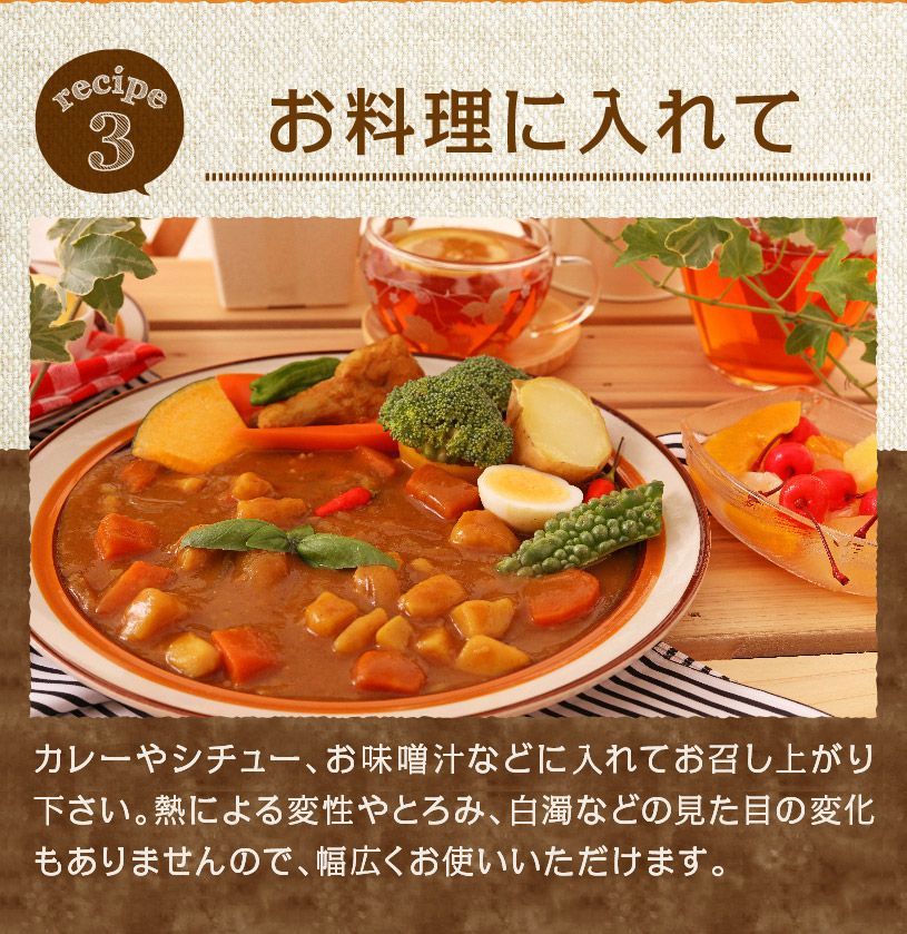 ●無味・無臭で溶けやすく、味の邪魔をしません。