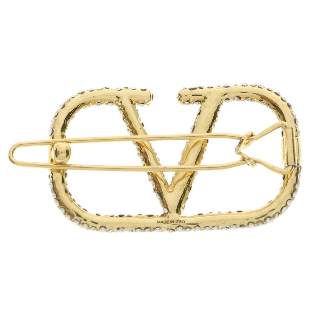 VALENTINO ヴァレンティノ Vロゴ メタル クリスタルビジューヘアクリップ ゴールド レディース