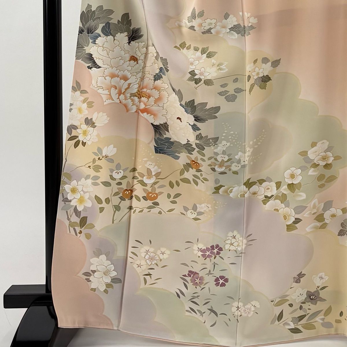 訪問着 身丈166 cm 裄丈68.5 L 袷 牡丹 雲文 金彩 刺繍 薄ピンク 正絹 秀品