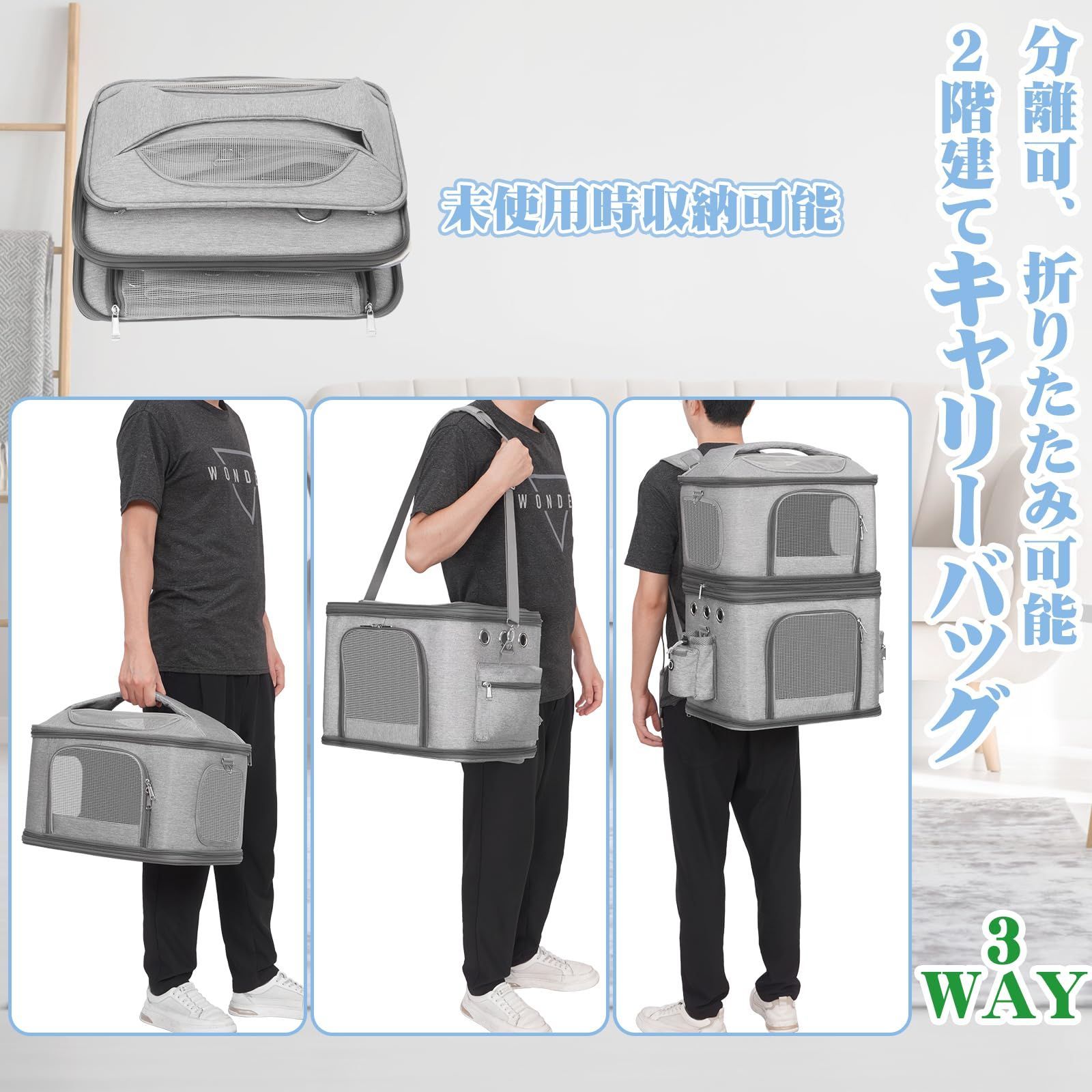 HOVONO 猫 2 匹 キャリー リュック 2段式 分離可 小型 犬 ペット ネコ の リュック ペットバッグ 特大 通気性 旅行/通院/交通機関/災害避難用