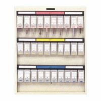 ●収容数:30個吊●外寸:幅333×奥20×高405mm●キーホルダー窓枠寸法:縦34×横22mm●材質:スチール●壁掛専用型●キーホルダー30個,取り付け穴,ネジ3個