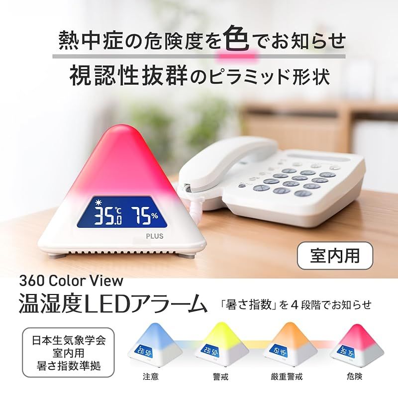 プラス 温度湿度計 猛暑 熱中症対策 温湿度LEDアラーム 色でお知らせ 通知 4段階警告 夏 冬切替 AT TH 03 0