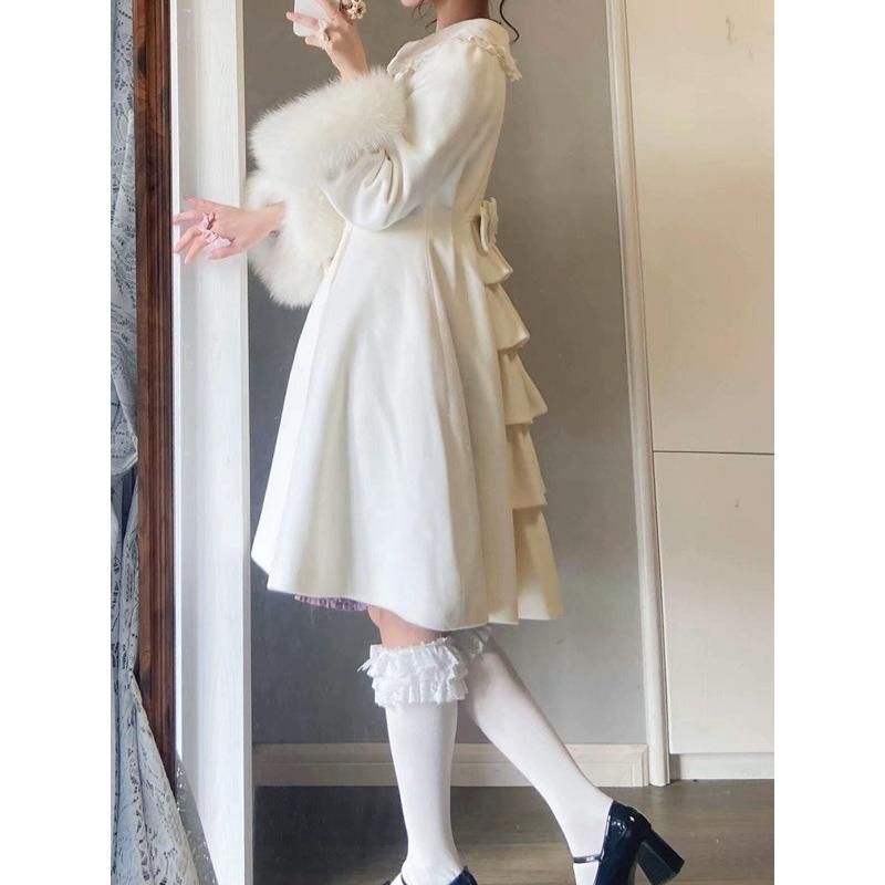 ステン コート 冬服 レディース リボン もこもこ ジャケット ミディアム丈 ロリータ ロリータコート アウター 小柄 ファー付き 学生