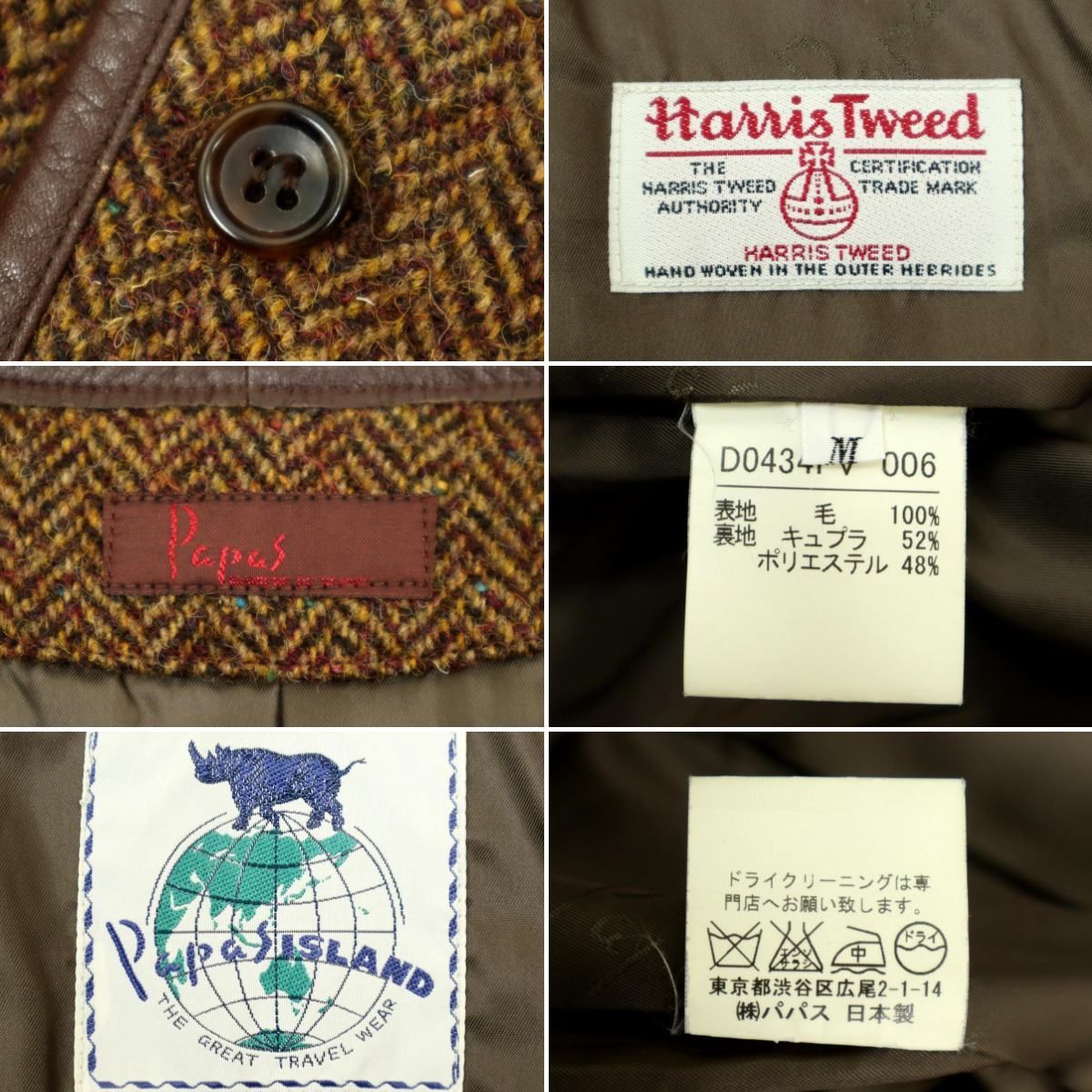 M 444 Papas×HARRIS TWEED パパス ハリスツイード ベスト ジレ 一部レザー使用 サイズM